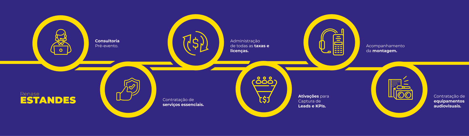 Transforme seu estande em um centro de negócios de alto impacto com nossa solução completa e personalizada, que abrange desde a consultoria pré-evento e administração de todas as taxas e licenças até a intermediação com montadoras homologadas, acompanhamento diário da montagem, contratação de serviços essenciais como segurança e buffet, e criação de ativações para captura de leads e KPIs. Cuidamos da contratação de equipamentos audiovisuais, elaboramos um cronograma detalhado e garantimos acompanhamento in loco desde a montagem até a desmontagem, para que você possa se concentrar em gerar leads e fechar negócios, com a tranquilidade de um evento impecável e resultados mensuráveis.